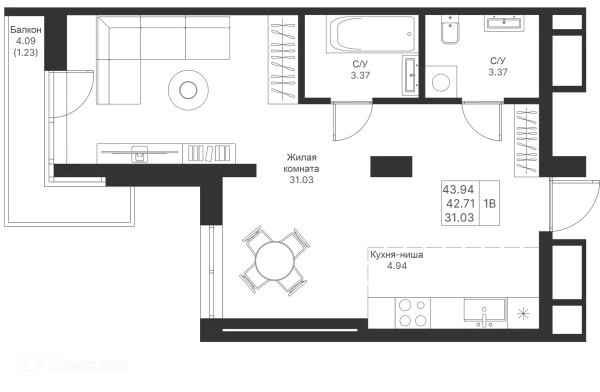 1 комн. квартира в Казане в ипотеку от 67 794 руб/месяц
