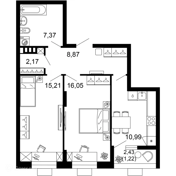 2 комн. квартира в Ростове-на-Дону в ипотеку от 67 401 руб/месяц