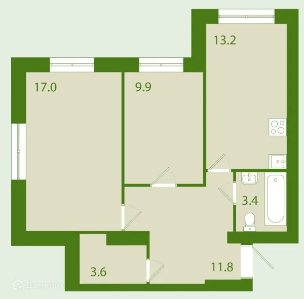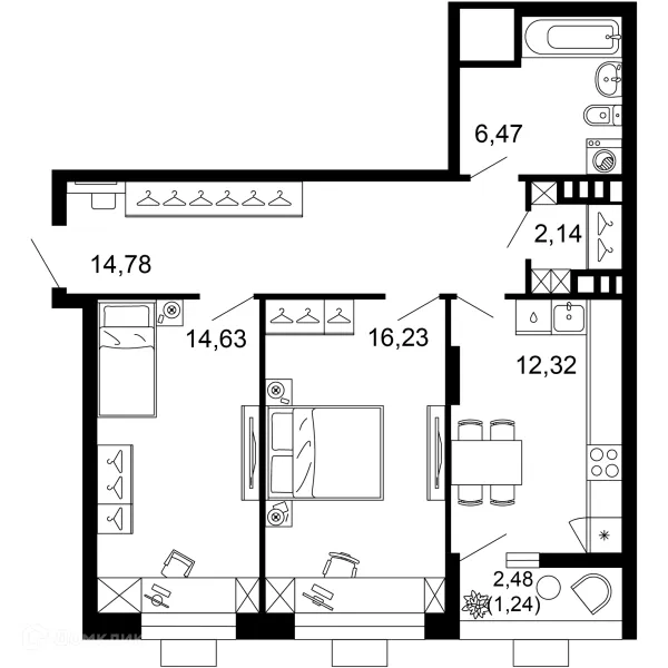 2 комн. квартира в Ростове-на-Дону в ипотеку от 63 196 руб/месяц