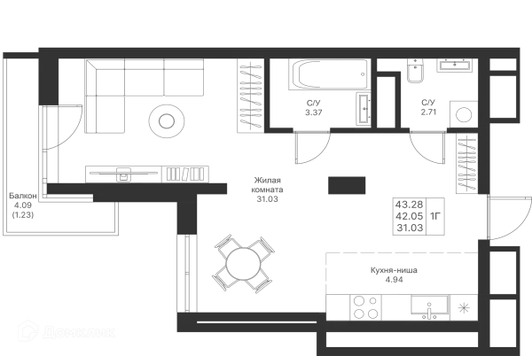 1 комн. квартира в Казане в ипотеку от 51 559 руб/месяц
