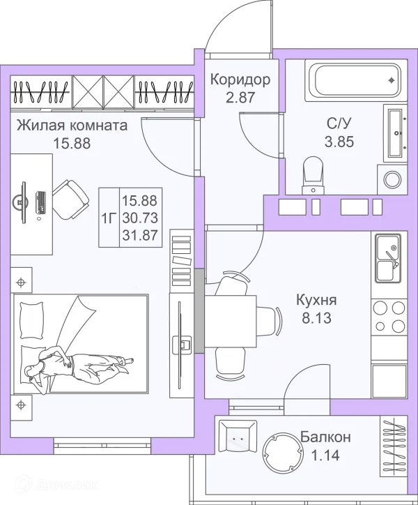 1 комн. квартира в Казане в ипотеку от 67 987 руб/месяц