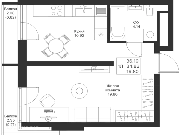 1 комн. квартира в Казане в ипотеку от 71 796 руб/месяц
