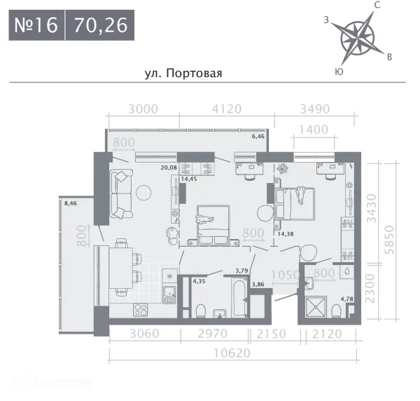 2 комн. квартира в Казане в ипотеку от 79 863 руб/месяц