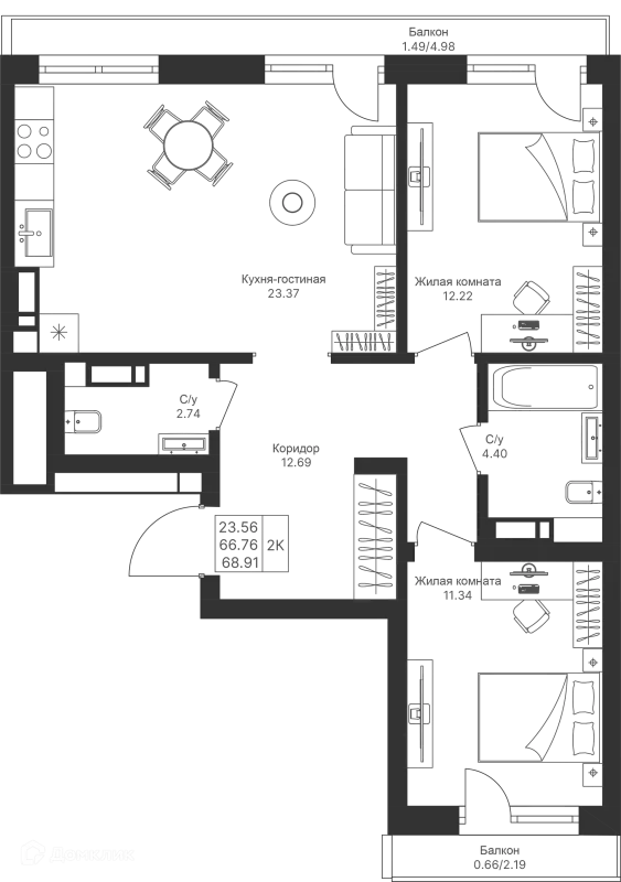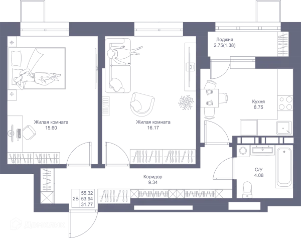 2 комн. квартира в Казане в ипотеку от 82 990 руб/месяц