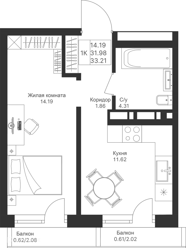 1 комн. квартира в Казане в ипотеку от 68 150 руб/месяц