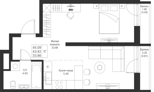 1 комн. квартира в Казане в ипотеку от 86 043 руб/месяц