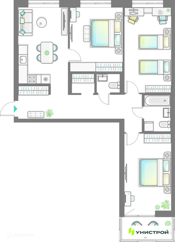 3 комн. квартира в Казане в ипотеку от 91 788 руб/месяц