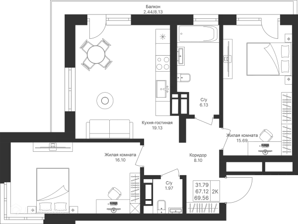 2 комн. квартира в Казане в ипотеку от 95 987 руб/месяц