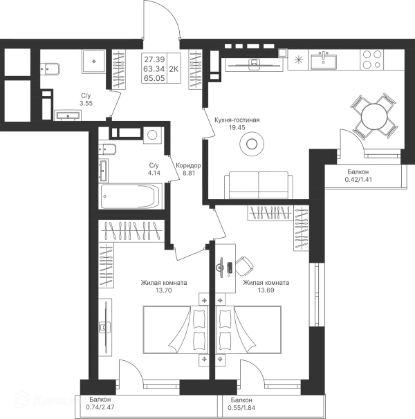 2 комн. квартира в Казане в ипотеку от 95 033 руб/месяц