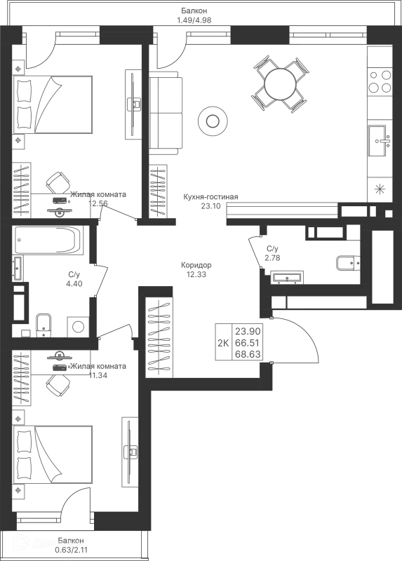 2 комн. квартира в Казане в ипотеку от 104 820 руб/месяц