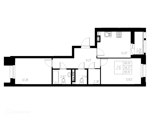 2 комн. квартира в Казане в ипотеку от 77 554 руб/месяц