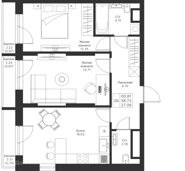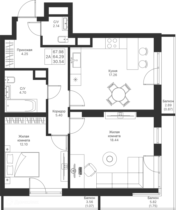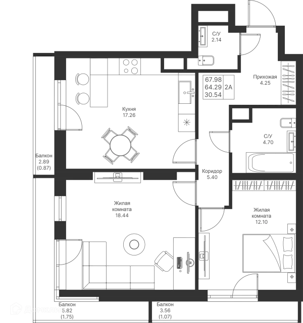 2 комн. квартира в Казане в ипотеку от 75 421 руб/месяц