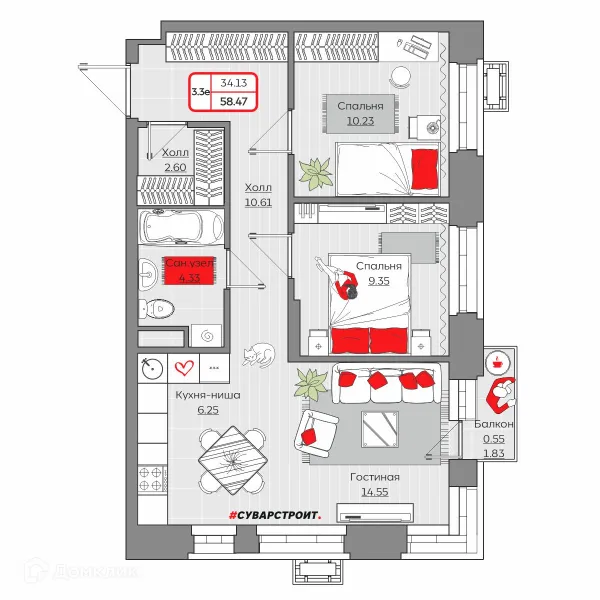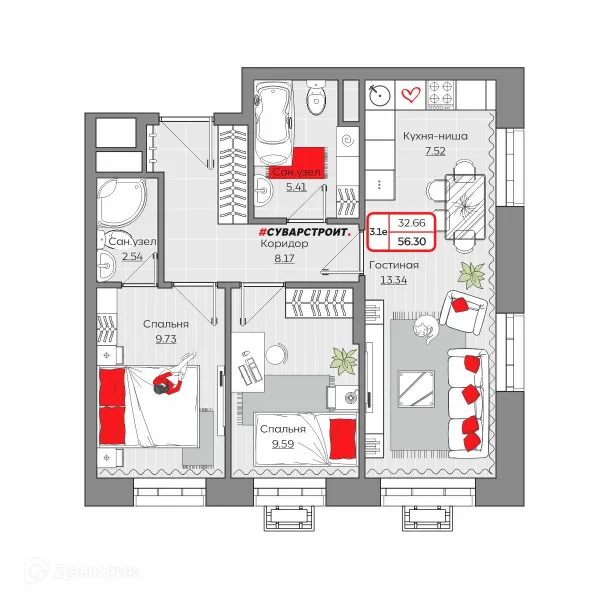 3 комн. квартира в Казане в ипотеку от 100 972 руб/месяц