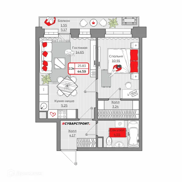 2 комн. квартира в Казане в ипотеку от 64 974 руб/месяц