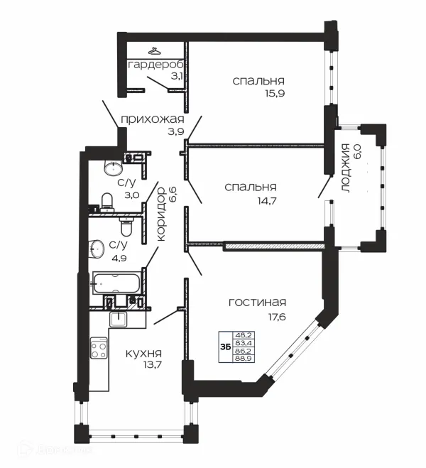 3 комн. квартира в Ростове-на-Дону в ипотеку от 99 491 руб/месяц