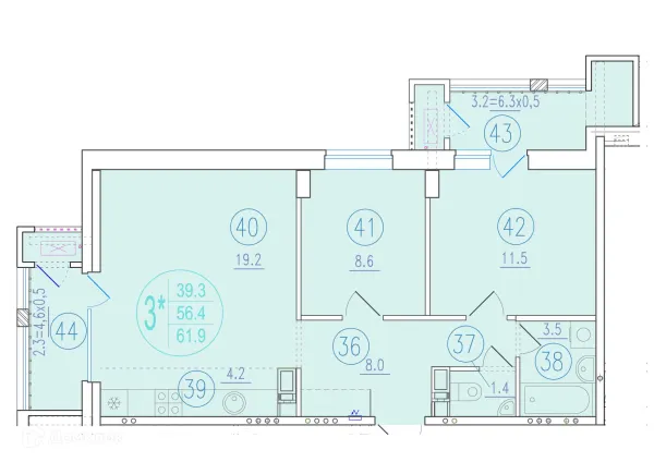 3 комн. квартира в Ростове-на-Дону в ипотеку от 84 245 руб/месяц