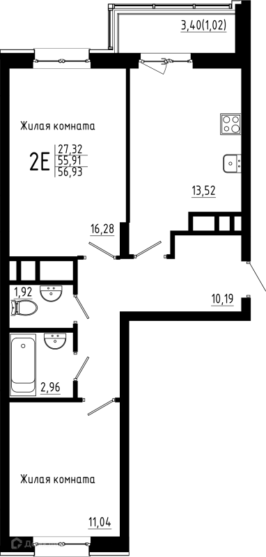 2 комн. квартира в Казане в ипотеку от 82 379 руб/месяц