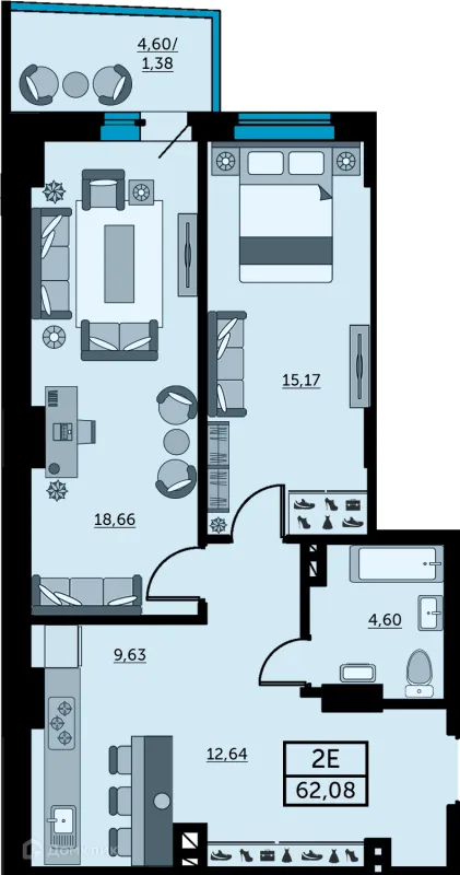 2 комн. квартира в Ростове-на-Дону в ипотеку от 62 854 руб/месяц