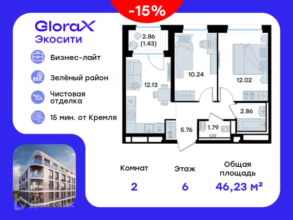 2 комн. квартира в Казане в ипотеку от 86 073 руб/месяц