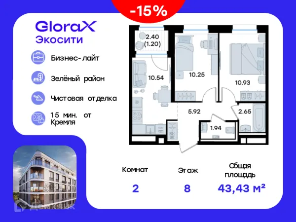 2 комн. квартира в Казане в ипотеку от 87 020 руб/месяц