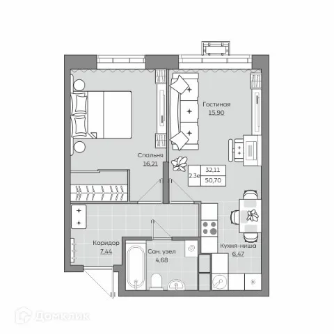 2 комн. квартира в Казане в ипотеку от 230 944 руб/месяц