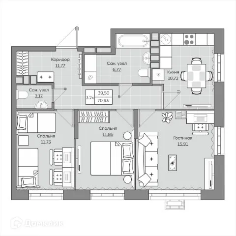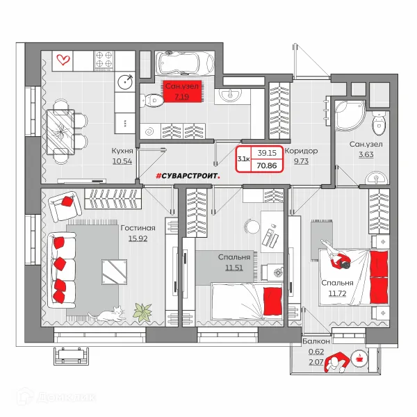 3 комн. квартира в Казане в ипотеку от 85 115 руб/месяц