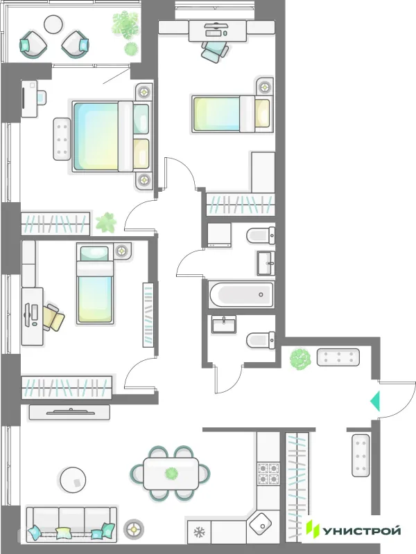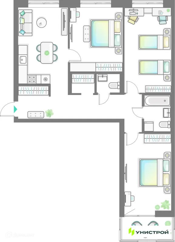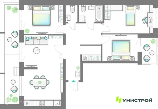 3 комн. квартира в Казане в ипотеку от 149 377 руб/месяц