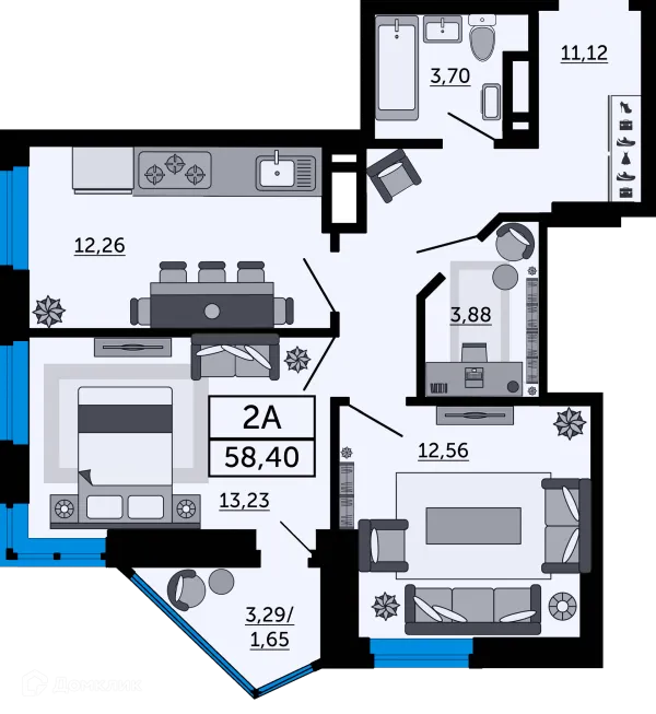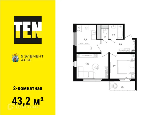 2 комн. квартира в Ростове-на-Дону в ипотеку от 86 580 руб/месяц