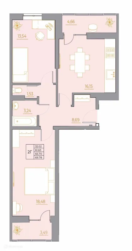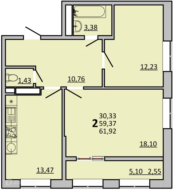 2 комн. квартира в Ростове-на-Дону в ипотеку от 63 490 руб/месяц