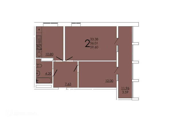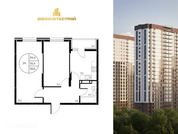 2 комн. квартира в Ростове-на-Дону в ипотеку от 55 919 руб/месяц