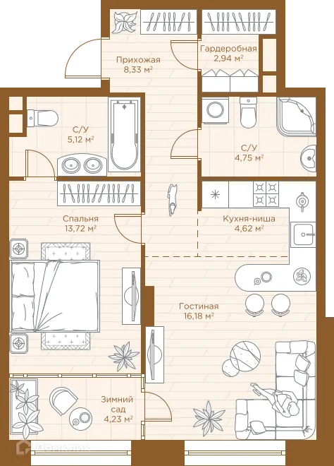1 комн. квартира в Казане в ипотеку от 64 183 руб/месяц