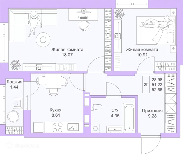 2 комн. квартира в Казане в ипотеку от 70 815 руб/месяц