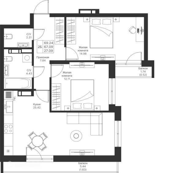 2 комн. квартира в Казане в ипотеку от 81 083 руб/месяц