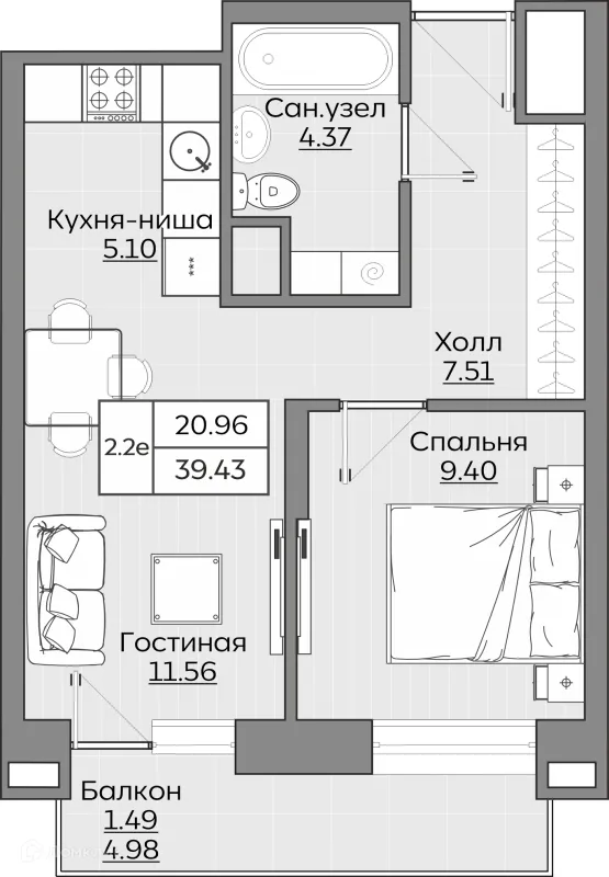 2 комн. квартира в Казане в ипотеку от 99 949 руб/месяц
