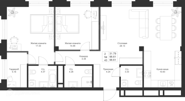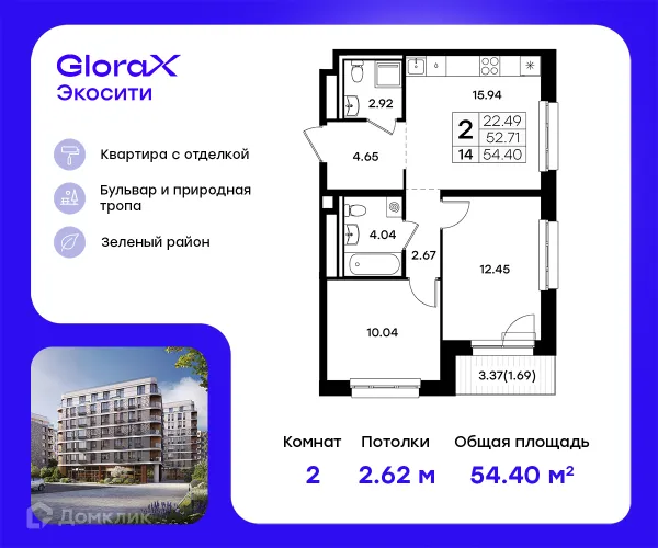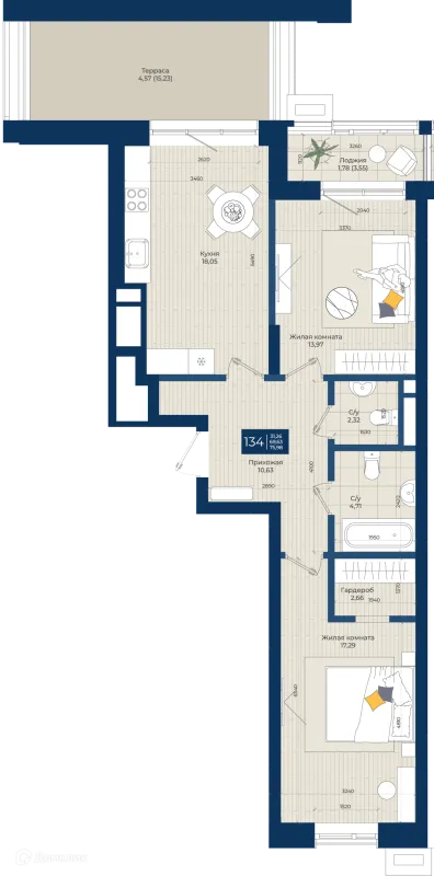 2 комн. квартира в Казане в ипотеку от 73 306 руб/месяц