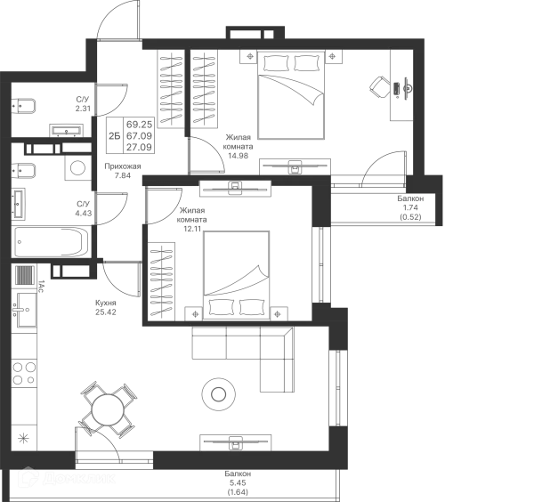2 комн. квартира в Казане в ипотеку от 64 673 руб/месяц