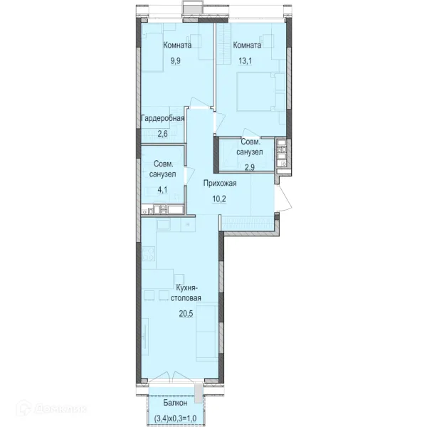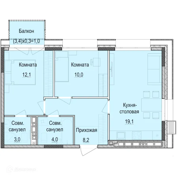 2 комн. квартира в Казане в ипотеку от 68 815 руб/месяц