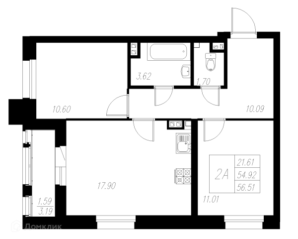 2 комн. квартира в Казане в ипотеку от 79 513 руб/месяц