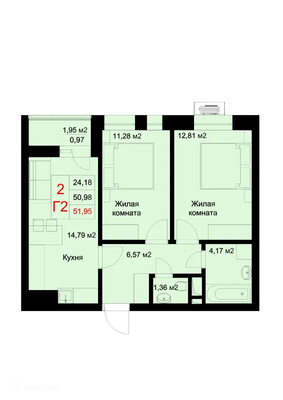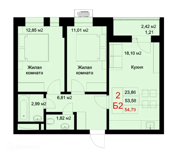 2 комн. квартира в Казане в ипотеку от 81 277 руб/месяц