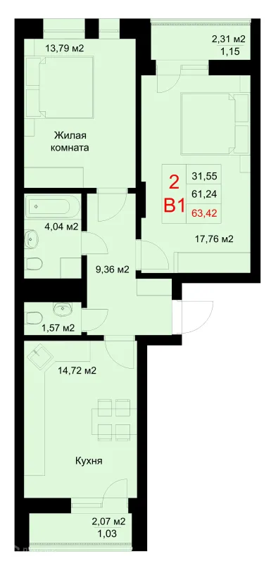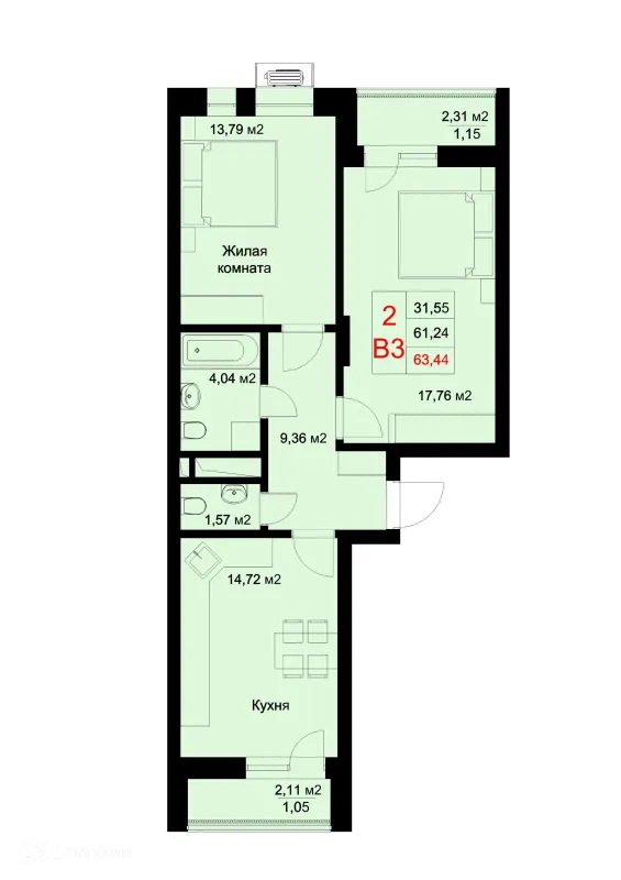 2 комн. квартира в Казане в ипотеку от 69 603 руб/месяц