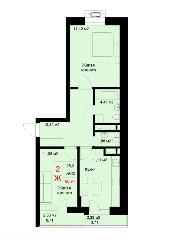 2 комн. квартира в Казане в ипотеку от 41 217 руб/месяц