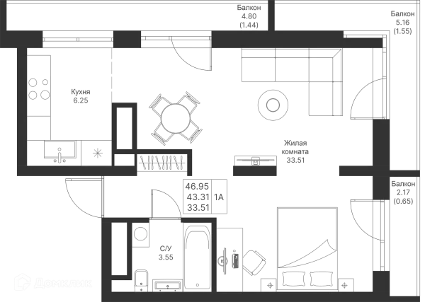 1 комн. квартира в Казане в ипотеку от 94 764 руб/месяц