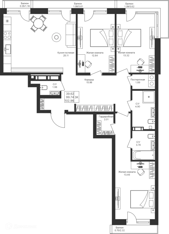 3 комн. квартира в Казане в ипотеку от 139 212 руб/месяц
