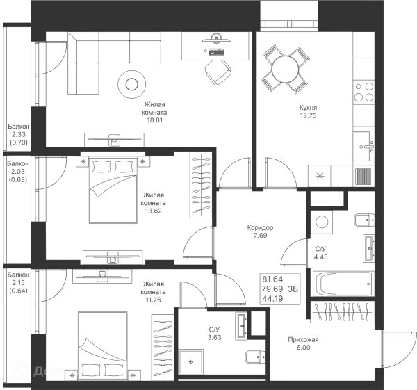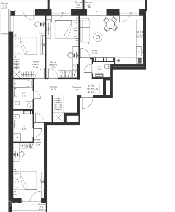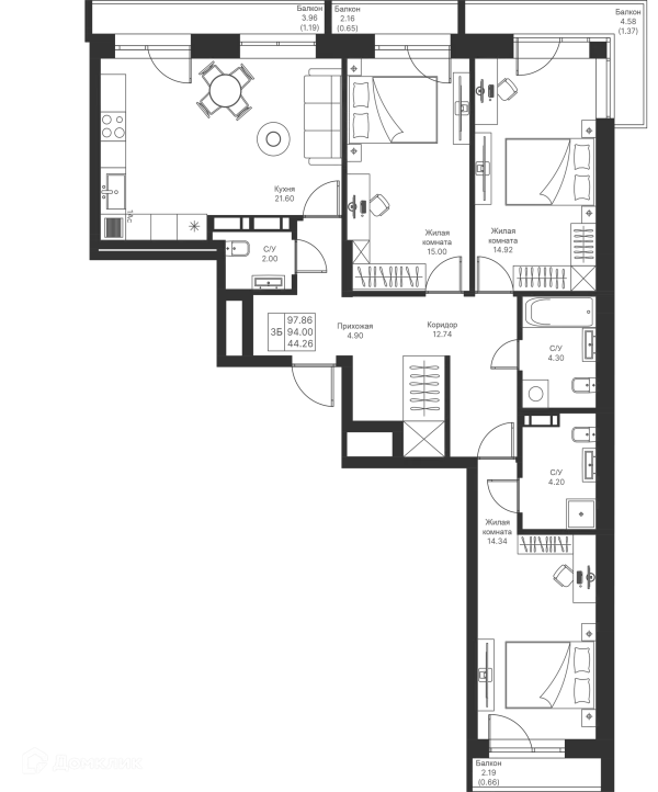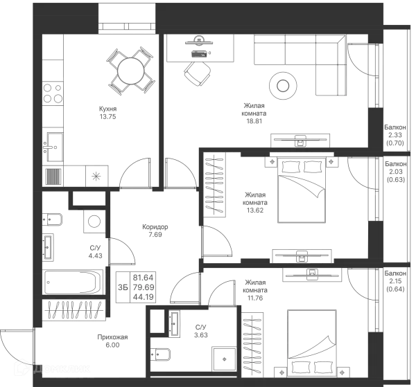 3 комн. квартира в Казане в ипотеку от 144 598 руб/месяц