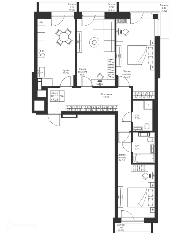3 комн. квартира в Казане в ипотеку от 157 286 руб/месяц