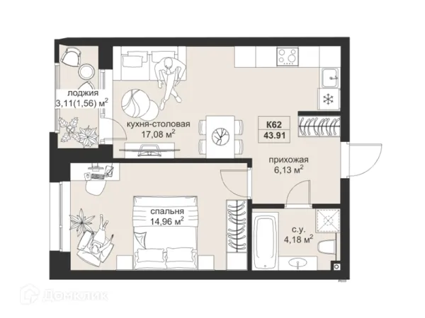 1 комн. квартира в Казане в ипотеку от 125 684 руб/месяц