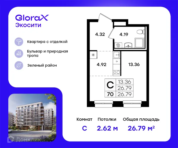 Студия квартира в Казане в ипотеку от 47 598 руб/месяц