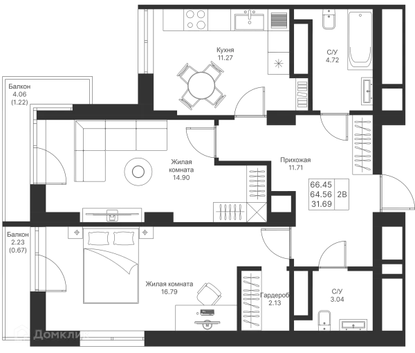 2 комн. квартира в Казане в ипотеку от 97 184 руб/месяц