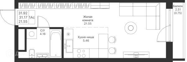 Студия квартира в Казане в ипотеку от 34 419 руб/месяц