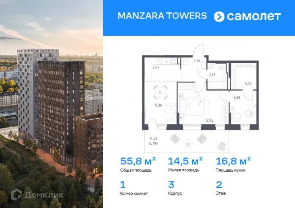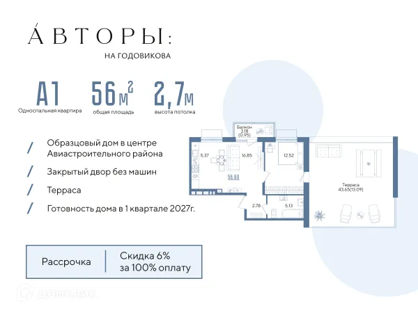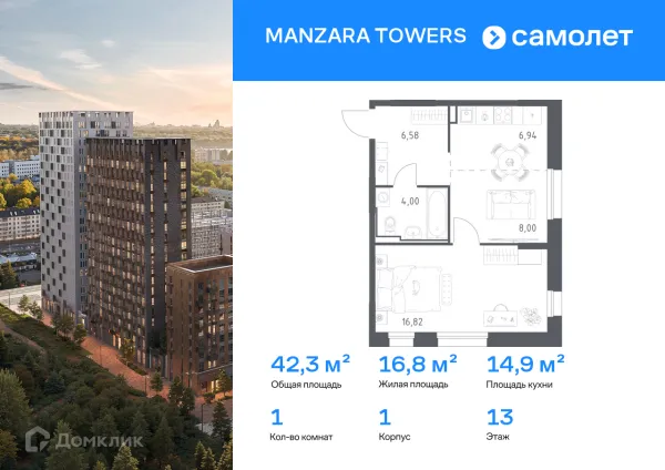 1 комн. квартира в Казане в ипотеку от 68 916 руб/месяц